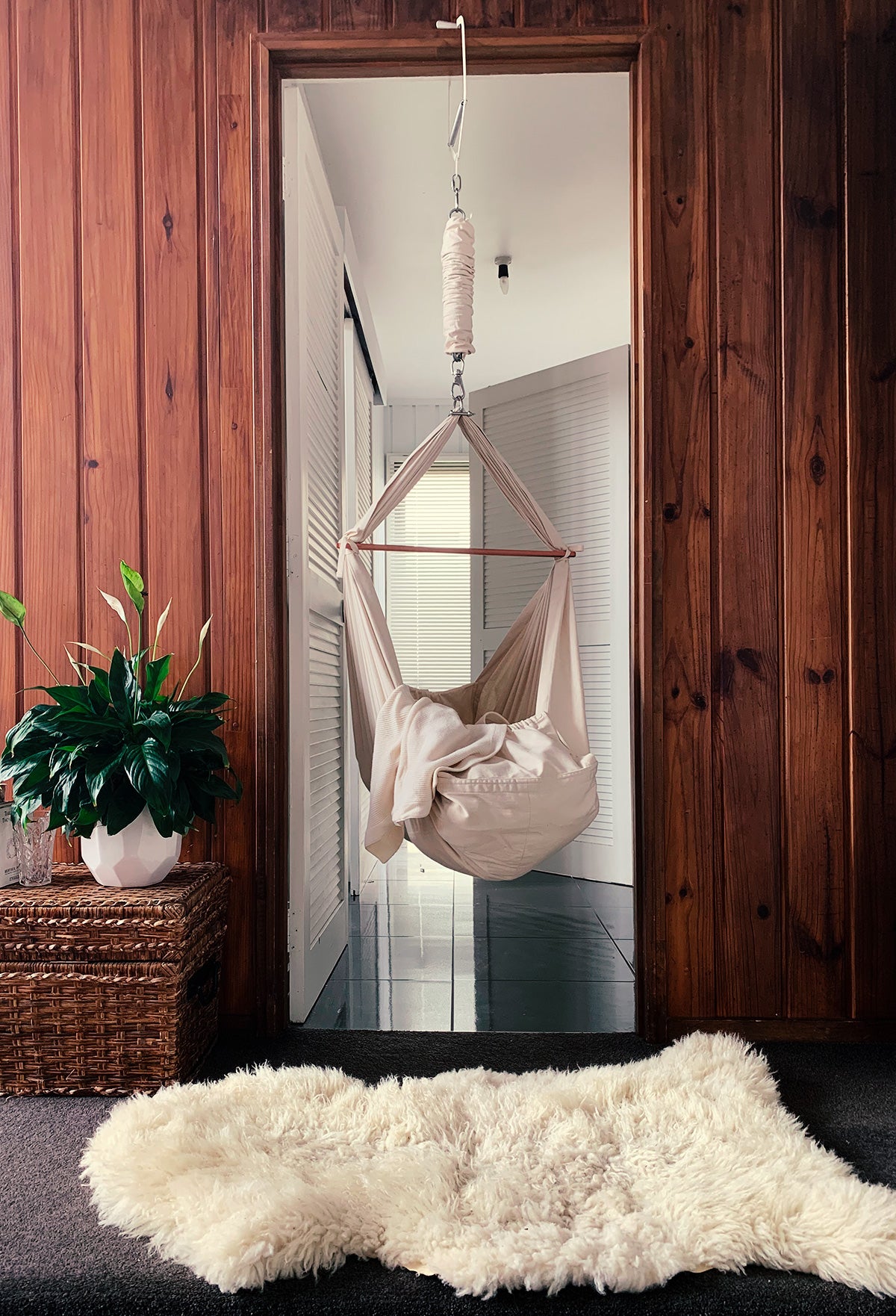 Hang your Nature's Sway Hammock from a sturdy door frame to keep your baby nearby you, anywhere in your house.