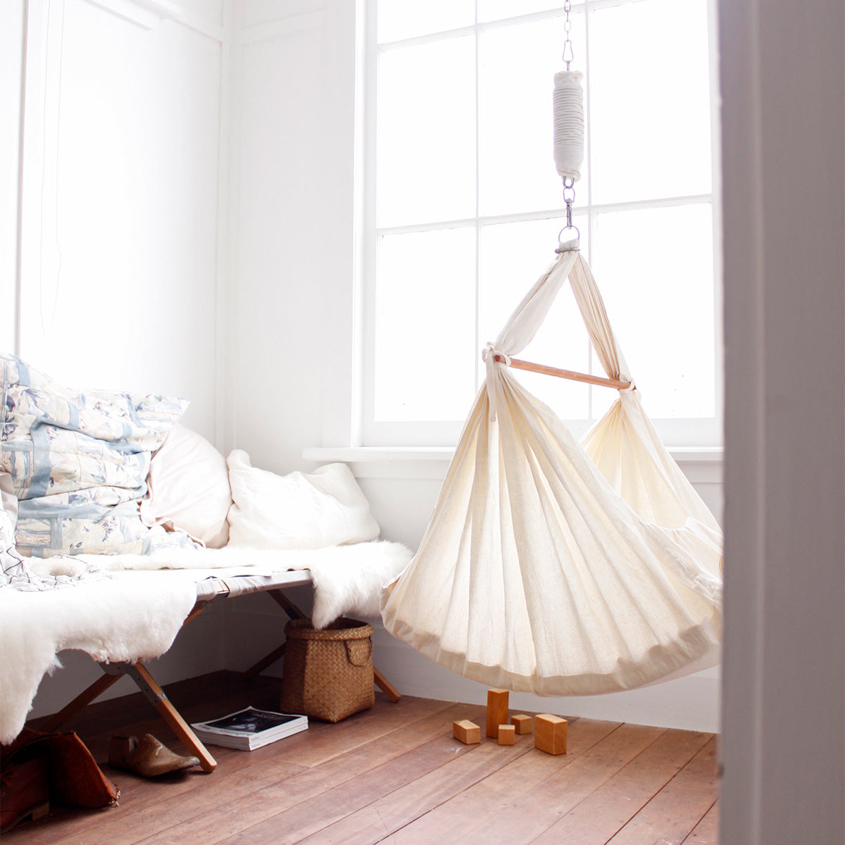 Inspired by traditional South Asian 'cloth cradles', Nature’s Sway baby hammocks are suspended from a single suspension point with a specially designed spring, our baby hammocks are a beautiful and practical addition to many new parents homes and nurseries. Find inspiration here.